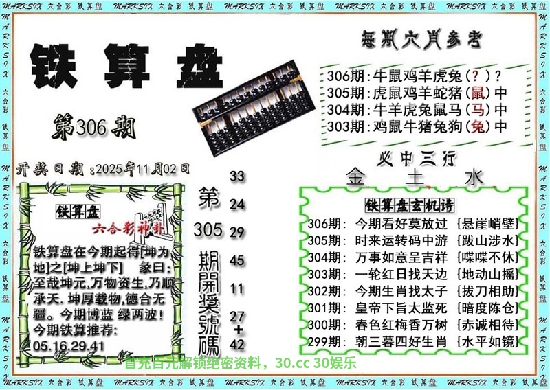 | 308期 | 0.1.2 | 1.4.5.6.9 | 开:兔39中 |